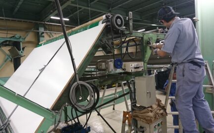検反機の改造のご依頼がありました。繊維生地の巻き取り機能における自動追従装置の改造、各種スイッチや電気配線につ …