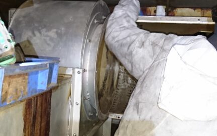 乾燥機の送風ファン内部の羽根車が振動しており、点検を行いました。閉所でしたので安全に注意し、点検作業実施しまし …